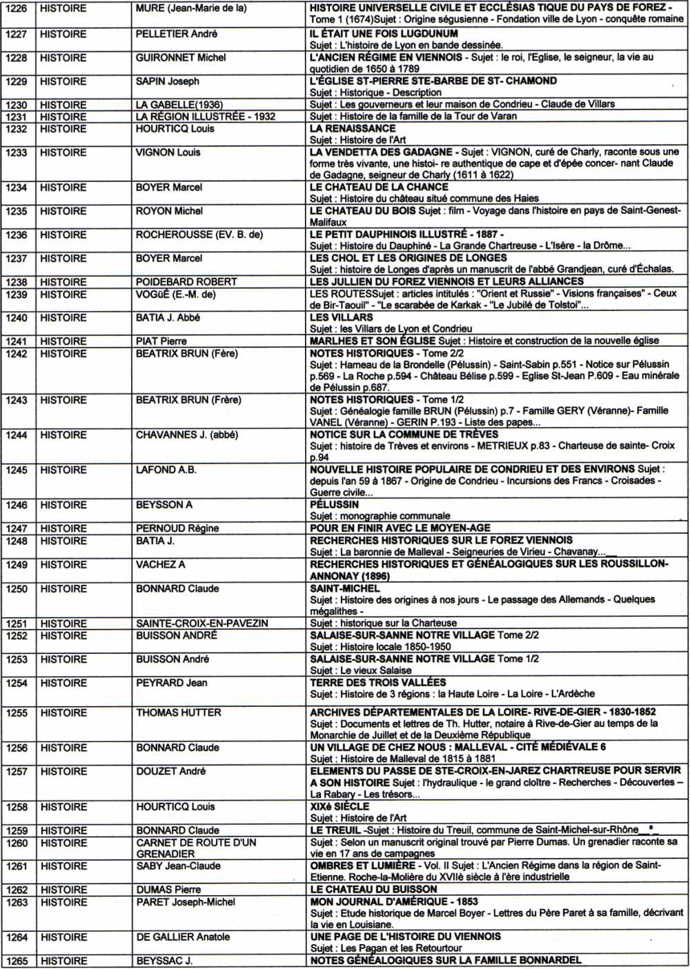 Suite ( page 9 ) de la liste des livres de la bibliothèque de l'association "Visages de notre Pilat"