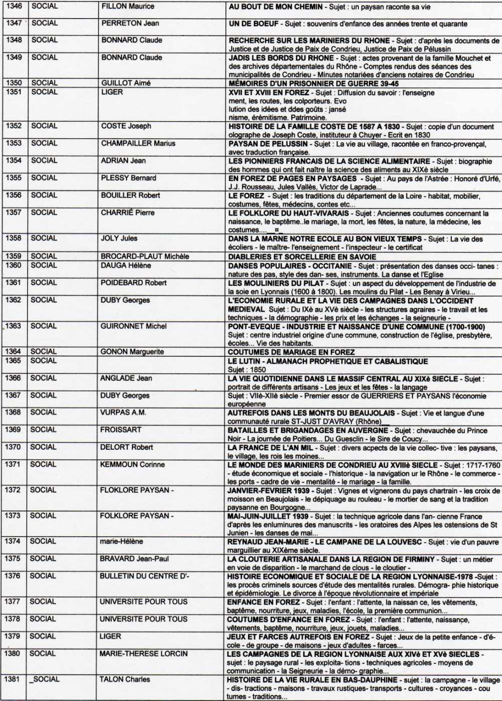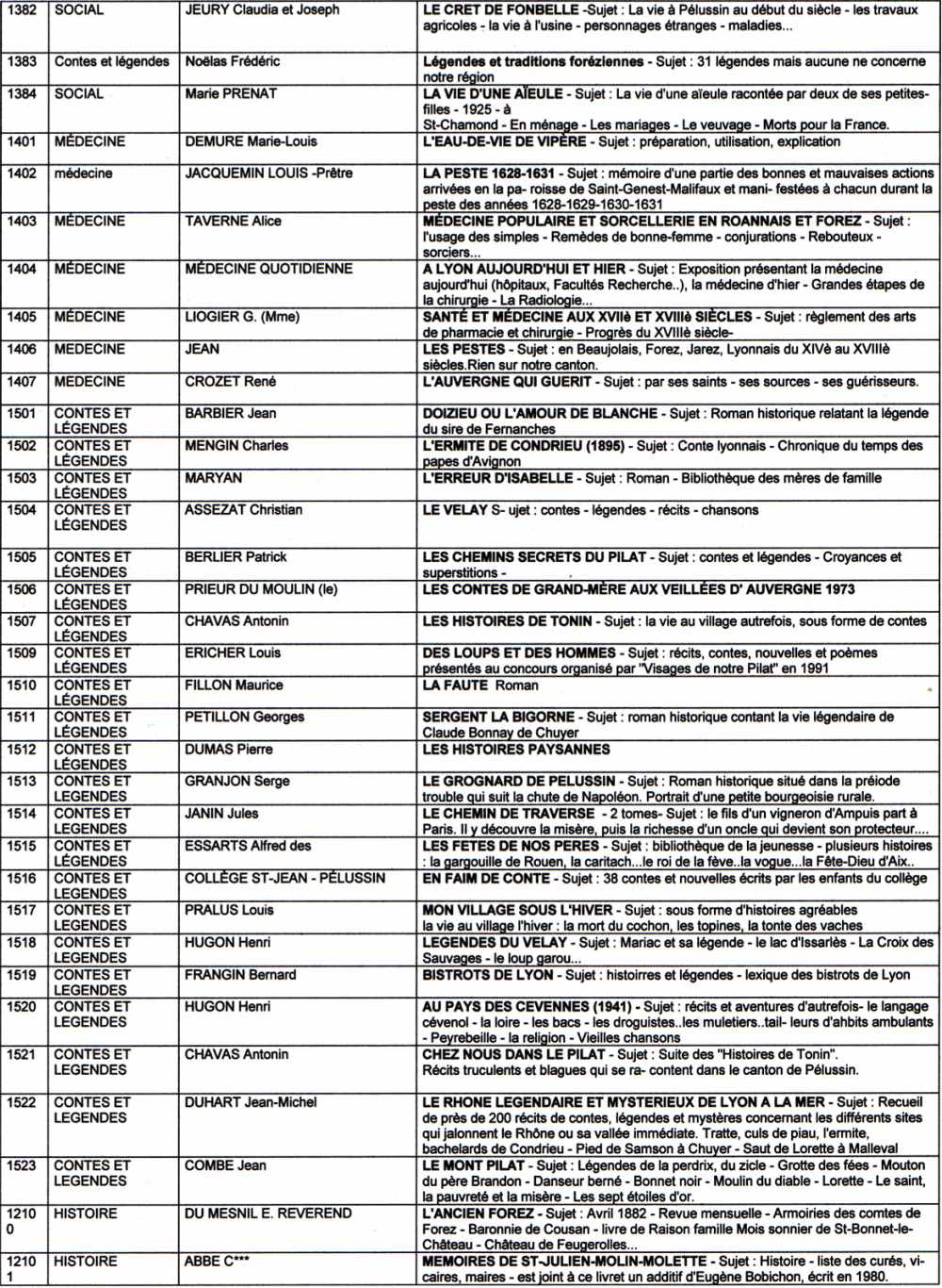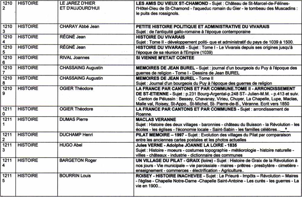 Suite ( page 10) de la liste des livres de la bibliothèque de l'association "Visages de notre Pilat"