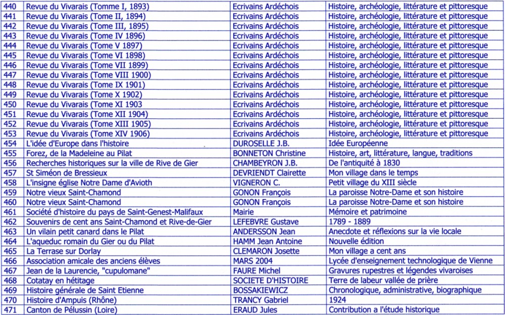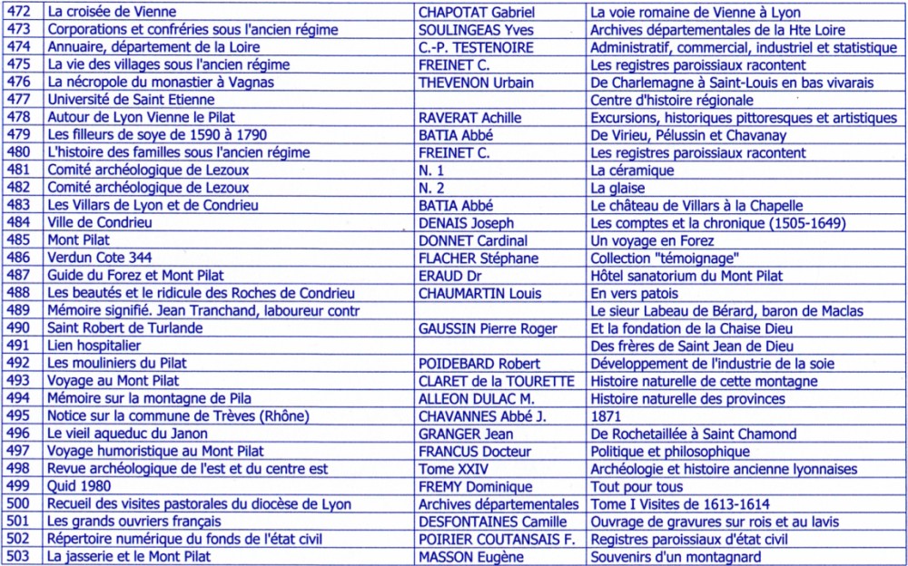 Voici la suite de la liste, (page 4) de livres appartenant à la bibliothèque de l'association "Visages de notre Pilat".