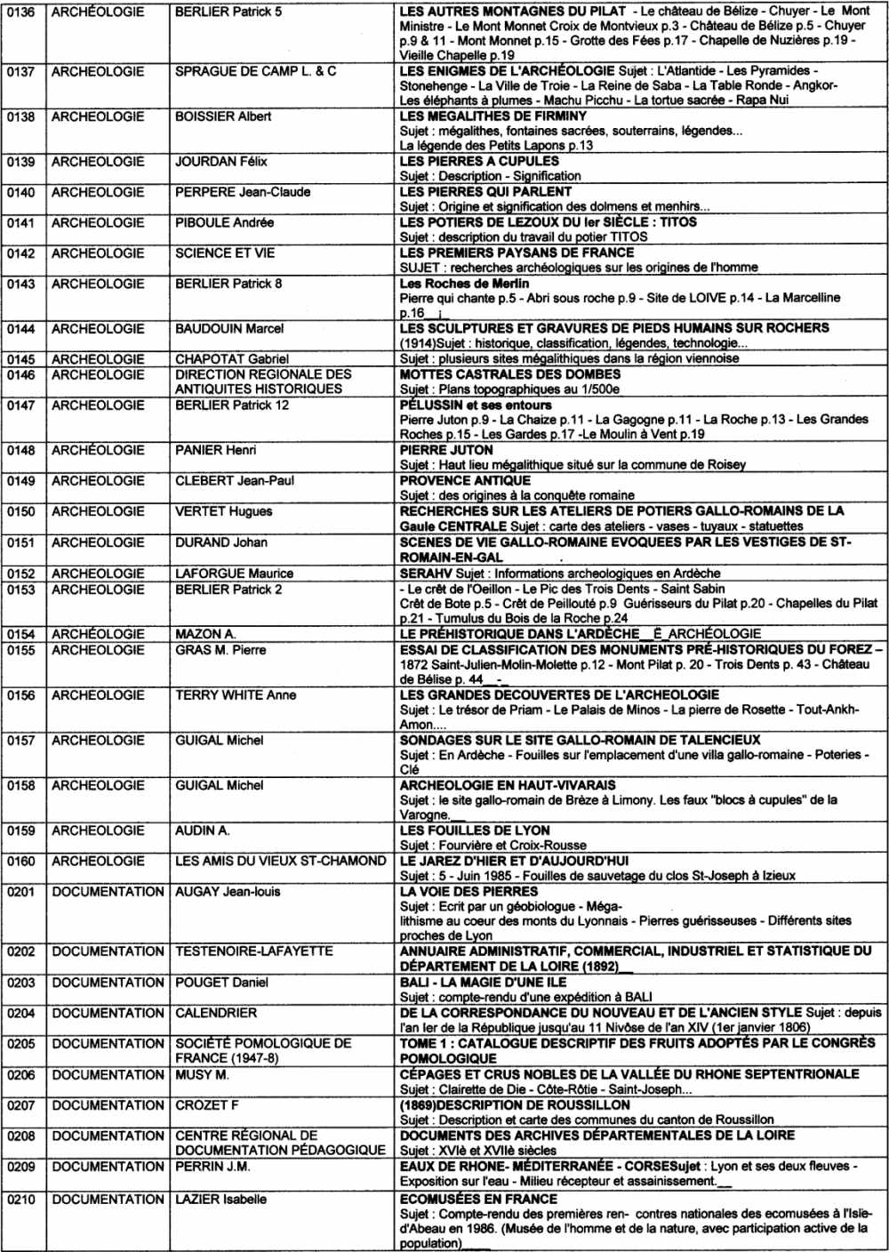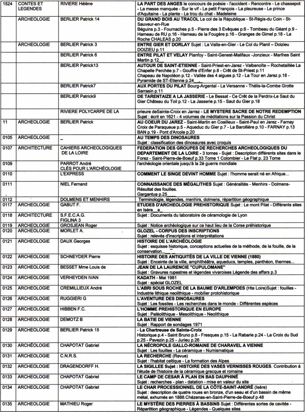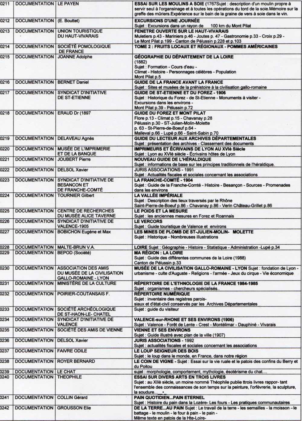 Suite (page 6)de la liste des livres de la bibliothèque de l'association "Visages de notre Pilat"